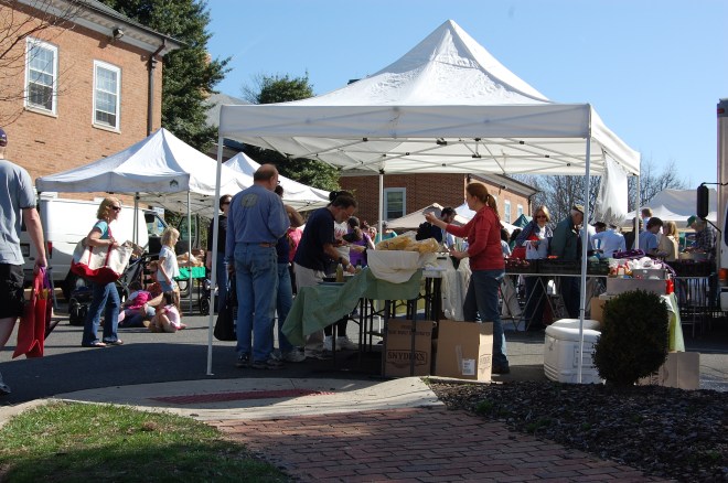 I’ve checked out a number of farmers markets since beginning to really appreciate food.  I love the opportunity they provide, to interact with the people who grow our food.  And the veggies and fruits I go home with are always fresher and more flavorful than anything I can get at the supermarket.  While I’m always up for visiting a farmers market on my travels – like the Ferry Plaza Farmers Market, my very first stop in San Francisco, or the Berkeley Springs Farmers Market in West Virginia, where I got a great local cooking pamphlet and lots of honey for the hubs – I’ll never cherish any market more than my home market.  And the Falls Church Farmers Market was a great one.