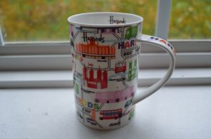 I planned to buy the Knightsbridge Map mug from Harrods, but when I saw it in person it was just way too big to fit in my backpack. I was in the midst of shedding a tiny tear when I spied this cutie. It was still a mug with a map theme, but it was more compact and colorful than the mug I had originally been eyeing. Sold.