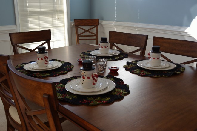 And if you’re wondering about the snowman hot cocoa mugs, they’re from Williams-Sonoma and were a present from my mother-in-law.  The hats are lids to keep the cocoa warm until you’re ready to drink it!  Does that cuteness not just slay you?