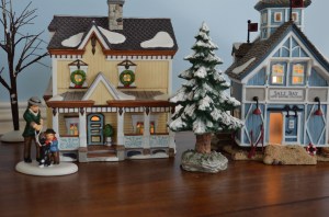 Here’s the Lakeshore Holiday House, the 2011 limited edition building, which I just got, with the Salt Bay Lifesaving Station, a gift I received a few Christmases ago.
