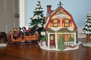 Remember I said I had plans for the buffet?  These are the plans: my Christmas village!  When I was a kid, I thought that the ultimate mark of an adult at Christmas was that she had her own Department 56 Christmas village.  My mom collected the Dickens Village and my grandmama had Christmas in the City.  Obviously as soon as I was married and had my own place I started my own collection.  My choice…