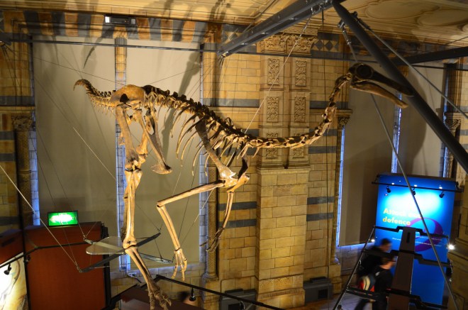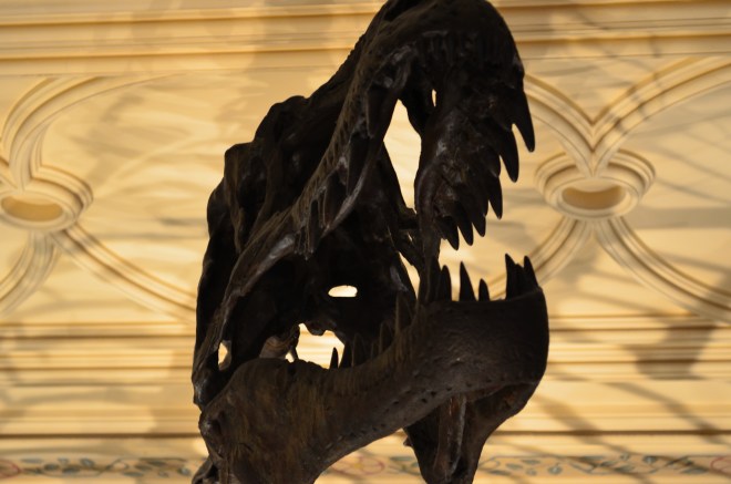 So, from the above you can probably tell that I went to see the dinos.  I may be ambivalent about large extinct lizards, but I’m decidedly not ambivalent about hubby and seeing dinosaurs makes him SO deliriously happy that I willingly tag along.  These aren’t the first dino skeletons I’ve dawdled around, and they won’t be the last.  (And since we were overseas, I didn’t have a working cell phone with me, so I couldn’t even play Angry Birds.  I actually read the placards and took pictures.  That’s how much I love my husband.)