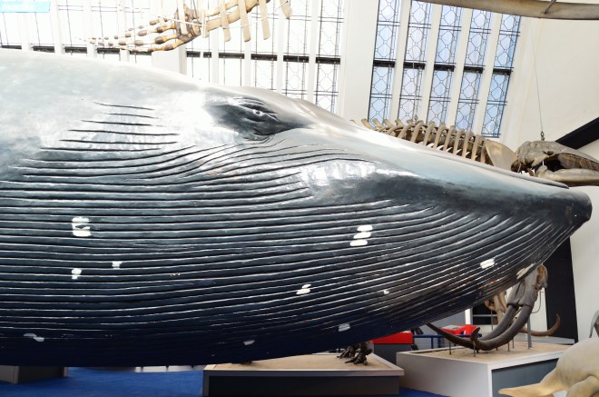 Seeing the blue whale was my only request at the Natural History Museum.  I have a thing for whales – in fact, as his very first gift to me, for my birthday about a month and a half after we started dating in 2001, hubby adopted me a whale.  (A humpback whale calf named Ember.  So cute.)  So my reward for dragging my sorry behind through the dinosaur exhibits at these museums is always a quick motor through the room that is invariably dedicated to mammals of the deep.