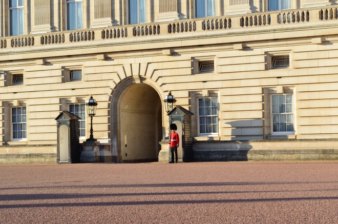 (We didn’t actually see the Changing of the Guard this time. We’d seen it in 2008, and once was enough. I’m 4’11” – the perfect height to get smacked in the mouth by elbows and cameras. Crowds don’t really agree with me. I’m sure hubby and I will go to the Changing of the Guard again some years from now, perhaps when we’re (hopefully) toting a little traveler with us. But for this trip, we both agreed that we were cool with skipping the spectacle, and we just stopped by to tip our imaginary hats to the Queen, and then went on our way.)