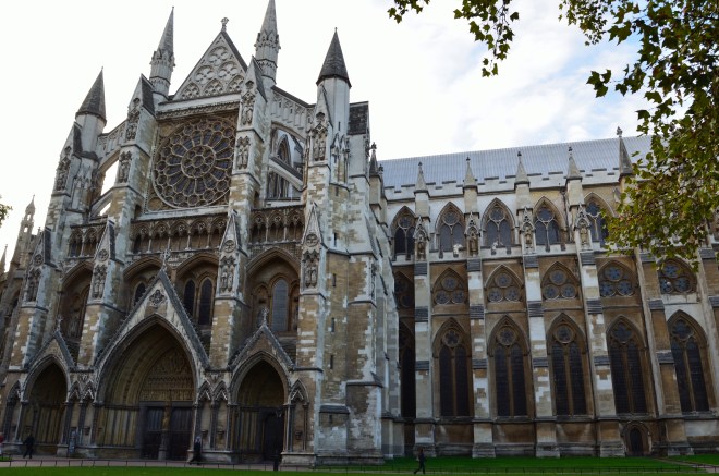 No trip to London is complete without a walk past some of London’s most iconic buildings – or that’s my opinion, anyway. This year, hubby didn’t want to go into Westminster Abbey; he’s not as into history as I am, and he has a problem with the idea of illustrious historical figures (or just rich people) being buried inside churches. I can understand where he’s coming from, but for me that viewpoint takes a total backseat to the thrill of seeing the effigies of Elizabeth I and Mary Tudor, or the plaque dedicated to Chaucer – people I’ve read about for years. Still, I settled for just motoring by the Abbey this time. On the next trip, we’ll go back in and get our audioguide on for sure.