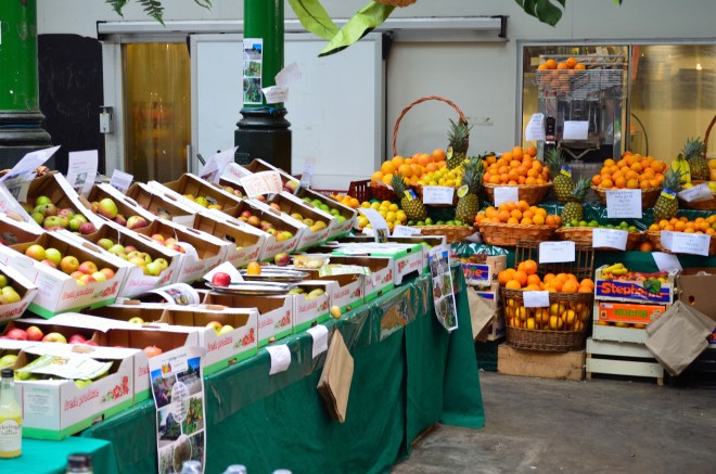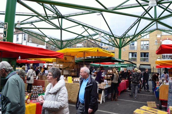 The Borough Market in Southwark was one of those “if we have time” destinations that I was reaaaaally hoping we’d get to visit. I love checking out local markets, seeing the gorgeous produce piled up – even if I’m always a bit sad that I can’t bring any home with me – and scoping out the various goods for sale. Hubby and I made sure to leave ourselves plenty of time for exploring the bits of London we didn’t see last time (well, some of them, anyway – it’s such a big, multi-layered city that we’ll never see it all) and I was thrilled we made it here.