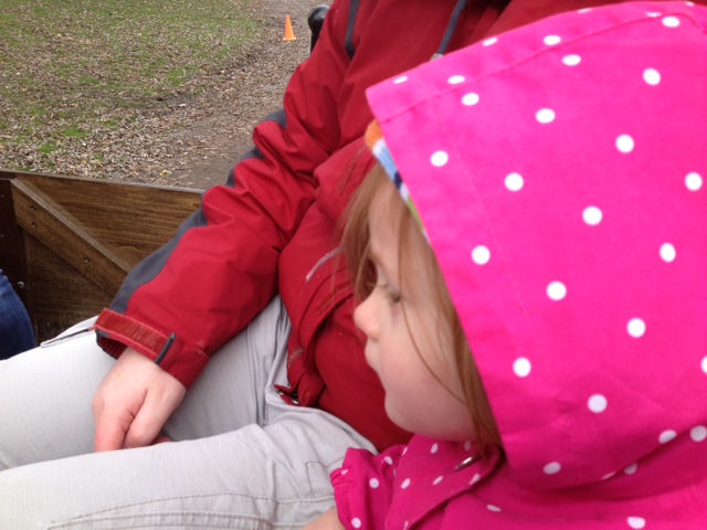 After the pony torture, we hopped in a tractor-pulled wagon for a ride around the property. Peanut was still pretty clingy, but interested in the other kids.