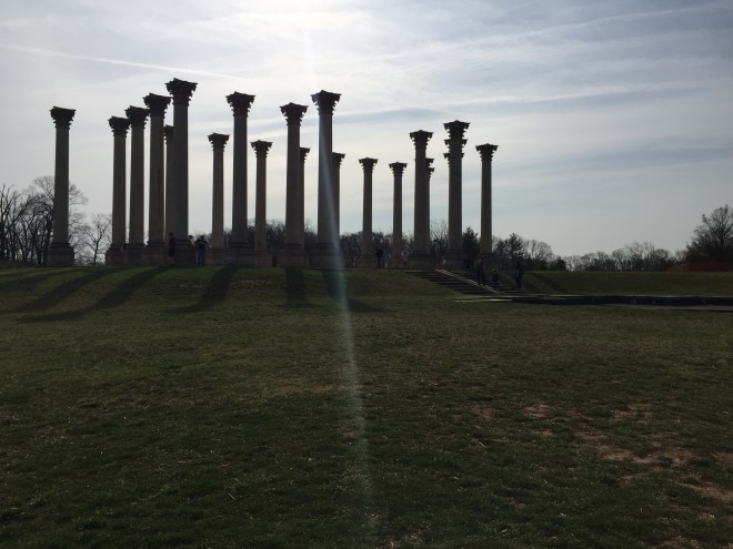 After a slight detour to check out the daffodils and a flowering tree, we headed for the original Capitol columns.  Hands down the coolest sight in the Arboretum.