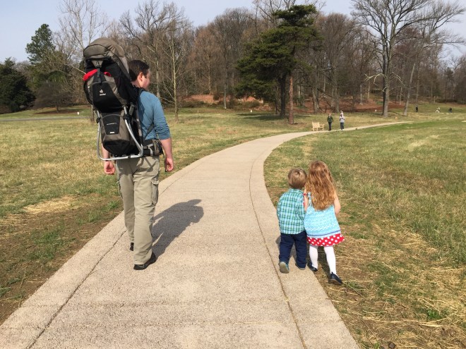 A March hike that is really more of a walk is apparently a tradition with this project.  When we did it last in 2015, Nugget had just joined us on the outside and our “hike” was pushing a stroller around paved roads.  This time, we just struck out on finding anything more challenging than mulch – but we had fun and we moved our legs in nature, so I’m saying it counts!