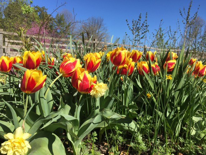 Rows and rows of tulips, daffodils, and more flowers in the upper garden – flowering trees all over the grounds – and baby animals in almost every enclosure!  Does it get better than that?