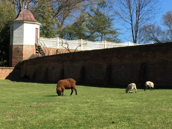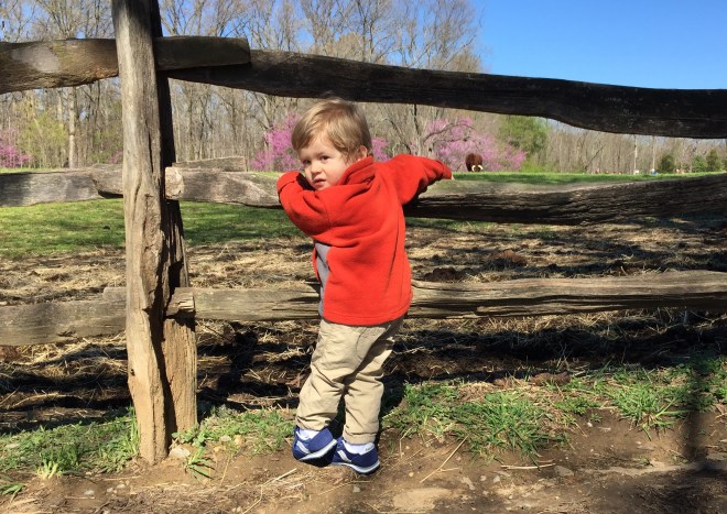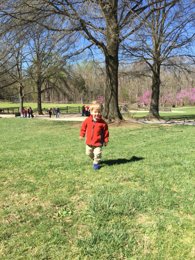 We started out with a walk around the upper garden and then down past the Mansion to go check out the animals – always the kids’ favorite part.  We actually went into the Mansion this time, because we found a slot between tour groups and it wasn’t too crowded.  Peanut loved it, as expected, and Nugget was a menace, also as expected.  I think in the future we’ll just send Peanut inside with one parent, and keep Nugget out with the other.  Fortunately, no property damage was done, and he didn’t even get yelled at for banging on doors like he did at the Lee-Fendall House.  So… a win?