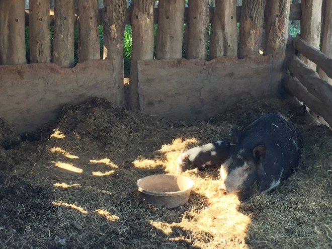 Next we continued down the hill toward the Heritage Farm, and on our way, we discovered – piglets!