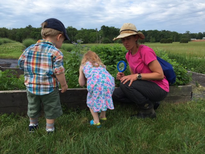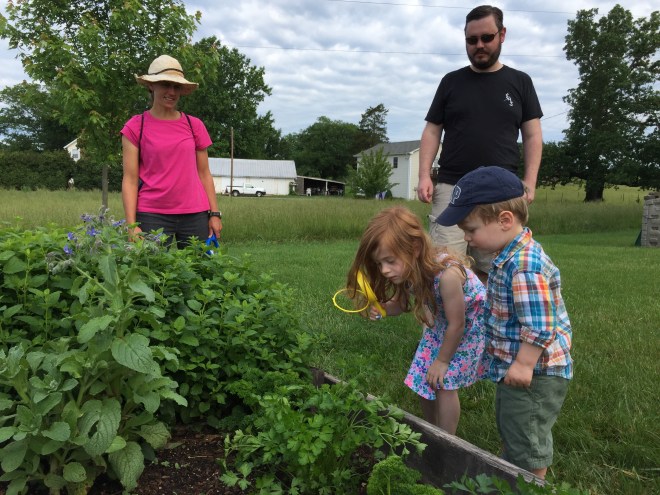 April handed out magnifying glasses to each of the kids and began the tour with the herb garden (which smelled incredible).