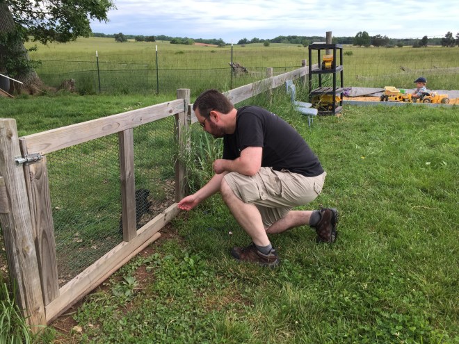 They even had activities for Steve! While Nugget dug in the sand box and Peanut played in the play house with the other little girl, Dad – okay, and Mom – fed the bunnies in the bunny pen.