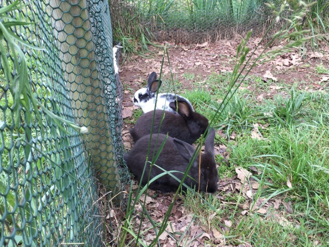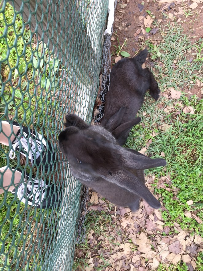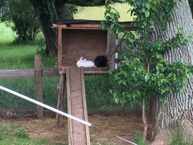 (Don’t worry about these bunnies, by the way. They’re just there for entertainment purposes, and at the end of the season they’ll go home with various farm visitors as pets. Not food.)