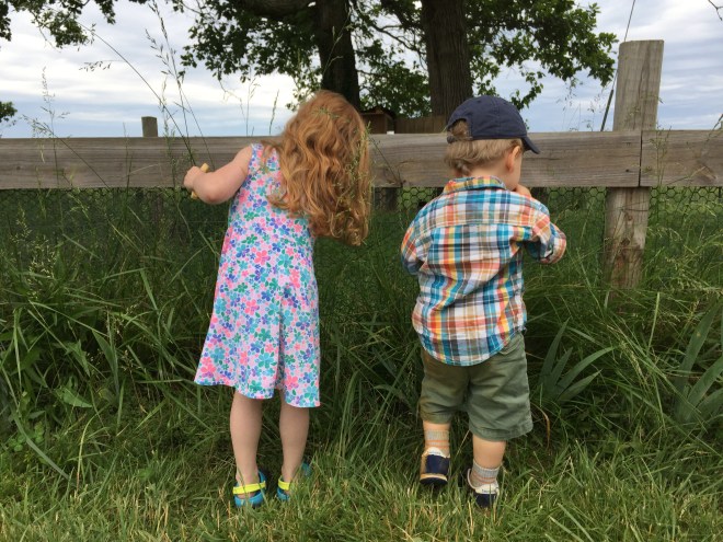 Nugget didn’t totally get the magnifying glass concept, but Peanut was way into it. She spent several minutes looking through her “gold” magnifying class at a swallowtail caterpillar.