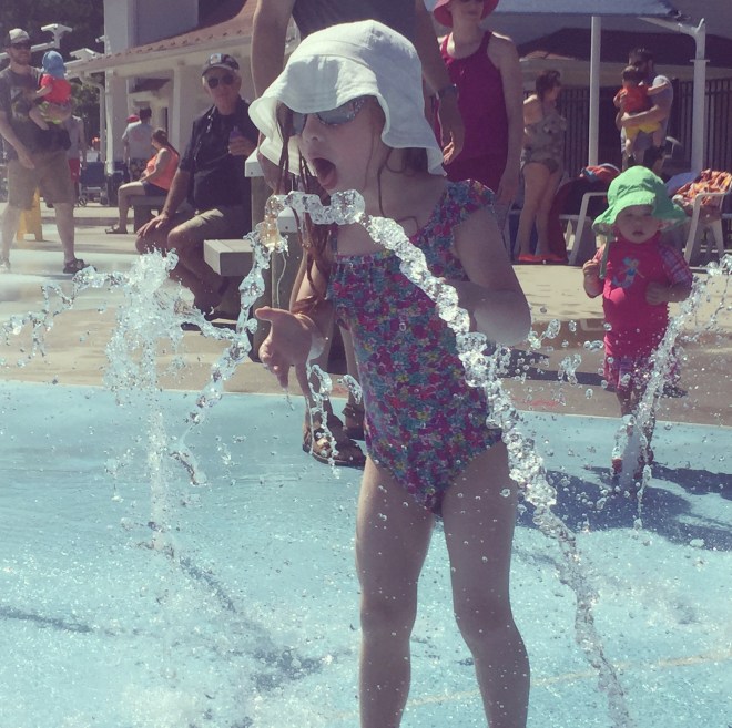 Mornin’, friends. How was everyone’s weekend? We pretty much lived in bathing suits, which is exactly how I like to spend summer weekends. On Saturday morning, we hit the farmers’ market and walked around town, then Steve took Nugget to the playground while I took Peanut shopping for a couple of things she needed for camp and to the garden center for pots to transplant the bean plants the kids planted at Exploration Days. On Sunday, we hit the splash pad in the morning, and it was a wonderland of water tables, waterfalls, and streams of water shooting in every direction. We all loved it and I can see it becoming a regular activity – especially since our local pool doesn’t open until noon. Speaking of the pool, we swam on both Saturday and Sunday afternoons; I love that we have a swimming spot so close to our house. Both kids love the water – but Nugget particularly. I joke that it’s the Pisces coming out in him, but he really is a fish. Peanut takes longer to warm up, but she can throw a truly epic tantrum when it’s time to leave the pool.