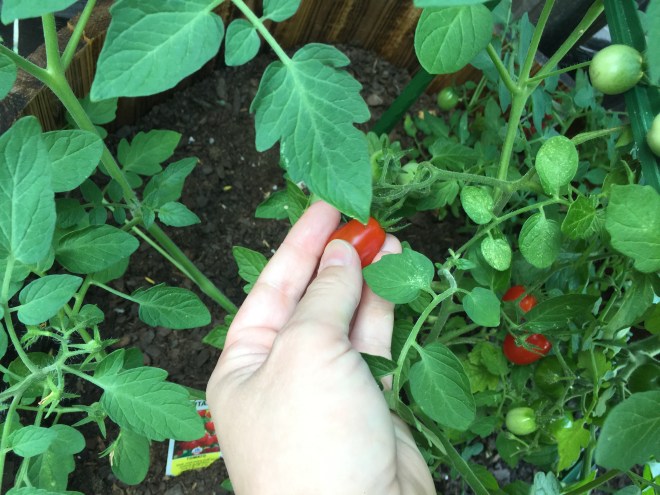Now for the good news – as I said before, things are actually growing!  Please excuse my complete and total surprise at this.  I’m not a very good gardener and have never successfully grown anything beyond lettuce and extremely hardy herbs.  Red tomatoes are new territory for me.