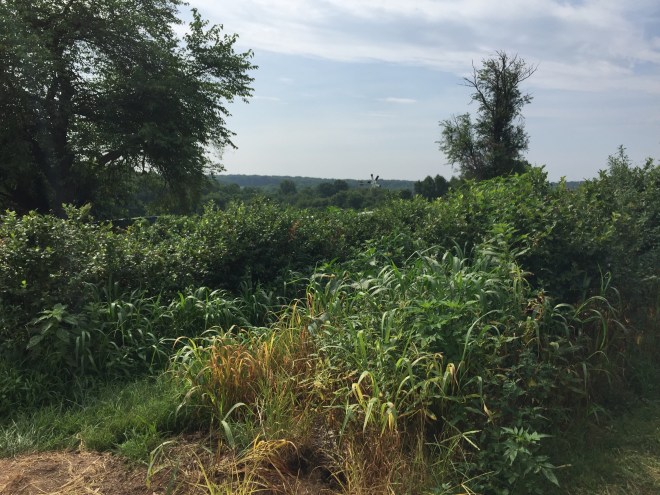 After picking up our buckets, we hopped back in the cars and drove to the fields.  After only one wrong turn, we found the blueberry fields.  Although the sign warned that the picking was “scattered” because it was the end of the season (note: why can I never seem to keep track of when the picking season is, for anything?) we found that there were still plenty of blueberries and we had no trouble finding lots of fruit left on the bushes.