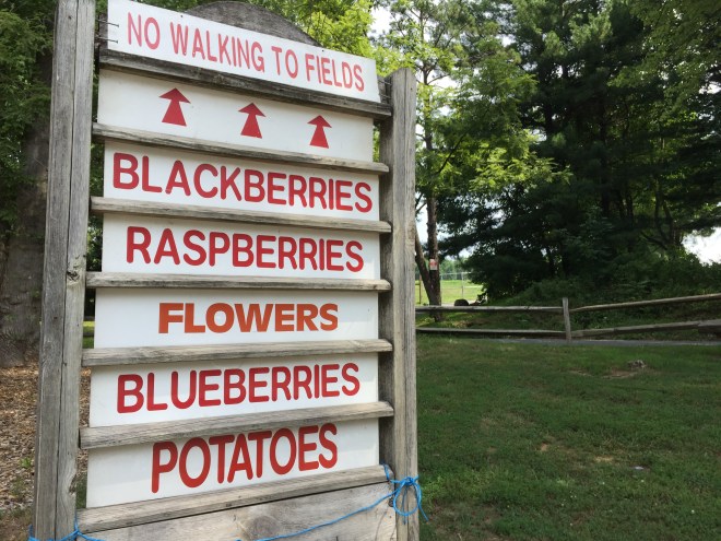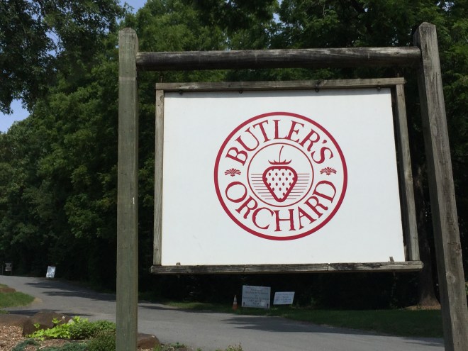 Longtime readers may recall that I loved picking blueberries at Awald Farms when we lived in New York.  For our first blueberry season in the D.C. area, I hoped to find something just as good.  I considered a few options in Loudoun County, but we always seem to go out there and I was in the mood for something different, so I was definitely interested when I found Butler’s Orchard, a family-owned farm in Germantown, Maryland.  I tossed out the idea of blueberry picking at Butler’s while discussing a playdate with one of the other moms from Peanut’s school, and she was into the idea.  So on Saturday, we met up with C and her mom for some pick-your-own fun.