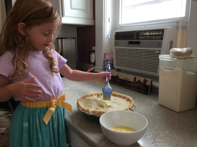 PIE!  We pulled up a recipe online (actually cobbled it together between Martha Stewart and Ina Garten) and got to work.  Peanut helped out with pretty much every stage of the baking!  (Nugget was a liability.)
