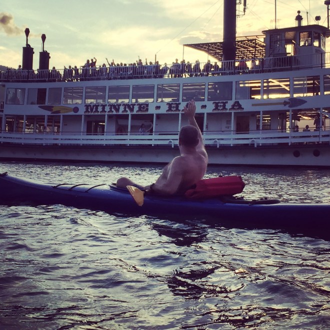 I have fond memories of cruising Lake George on the Minne-ha-ha with my grandparents. And last summer, my friend Seth and I got up close and personal with it – in kayaks!
