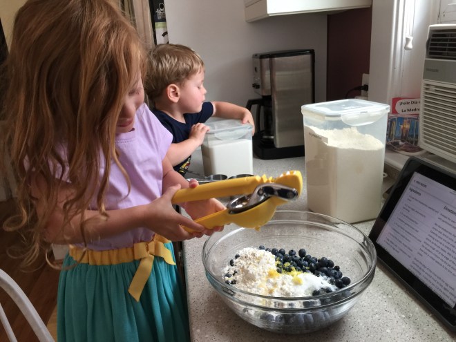 • Keep up the Saturday walks to the farmers’ market and do some baking with seasonal fruit.  I’m calling this one done!  We didn’t get to the farmers’ market as often as I’d hoped we would, since we spent so much time out of town this summer and on the weekends that we were in town, we usually beat the heat at the splash pad on Saturday mornings.  But we did make it to the farmers’ market a few times, and we baked with blueberries that we picked ourselves and tomatoes and herbs that we harvested from our garden.