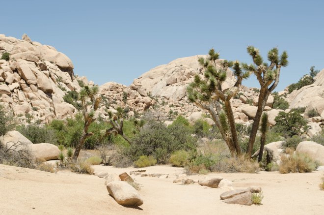 I’d been getting more and more excited as we drove into the desert, and I almost flew out the window when we spotted the first Joshua tree by the side of the road.  But still, I was unprepared for how immediately and completely the desert landscape would grab ahold of my heart and imagination, just feet from the park gate.