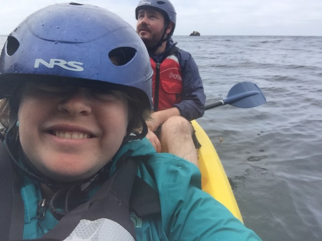 • It was a blast! I wasn’t nervous, but I have twenty years of paddling experience, including some surf kayaking (but that was, admittedly, a long time ago) and I also don’t get nervous too easily. My husband is the more cautious one – I’m the jump-in-with-both-feet-because-what-could-happen type. That said, I don’t think he was nervous either, and he has much, much less paddling experience than I do. There weren’t big swells or anything, we can both swim, and we had helmets and a really capable expert guide. It was an awesome day!