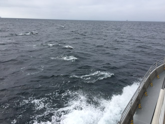 Dolphins!  These guys were so fun and playful as they rode the wake and swam alongside our boat.