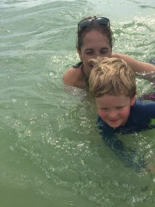 Nugget enjoyed a swim with Aunt Rebecca and some of her friends, while I stayed on the beach with Peanut.