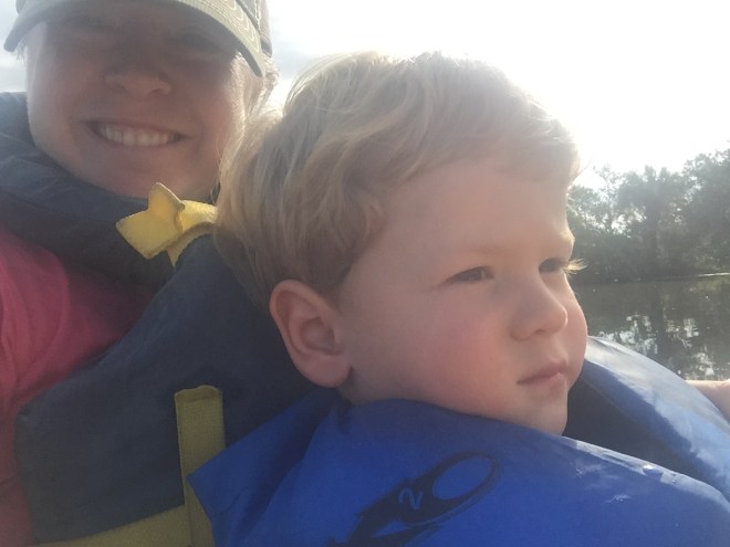As for me, I still had my little duffer in a single kayak. Per usual, we were both swimming in our life jackets. <–see what I did there?