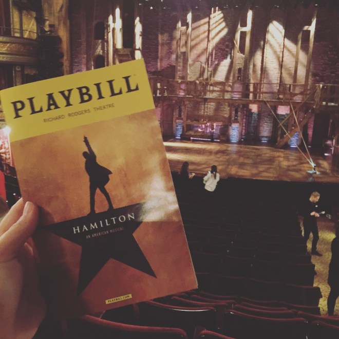 One thing that we both noted, and couldn’t stop talking about, was how funny the show is – funny in ways that don’t necessarily come across when just listening to the music (as great as it is on its own). The actor who played Aaron Burr was absolutely hysterical – rolling his eyes, side-eyeing, and making funny gestures all over the place. There were other visuals, too, that took the show from great to once-in-a-lifetime. For instance? When Angelica sings, in Satisfied, the line “My father has no son, so I’m the one who has to social climb for one,” Philip Schuyler was cleaning his glasses up in the scaffolding – that really tickled me. And you know the dubstep when young Philip raps in Take a Break? THAT’S ELIZA. There was more, but I don’t want to spoil anything – because everyone should go. Mortgage everything and go. It was worth every penny.