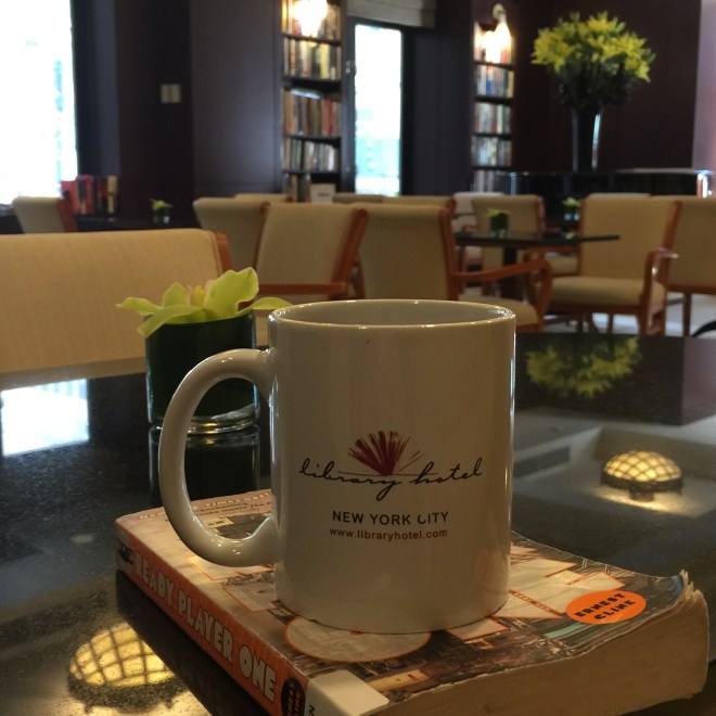 I got myself a Rory Gilmore-sized cup of coffee and settled down to – what else? – read. (No, I didn’t pull Ready Player One from the shelves at the hotel. That was my Alexandria Library copy that I toted along with me, and which Steve is now reading.)