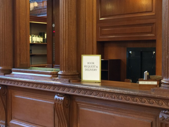 We found the reading room, and the book request counter. I HAVE SOME REQUESTS.