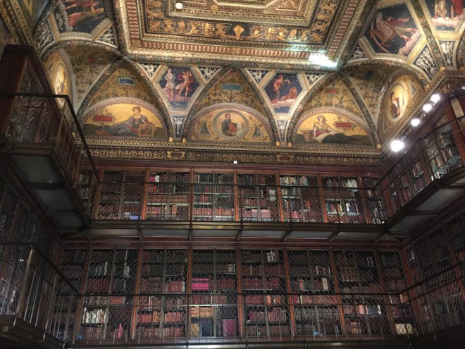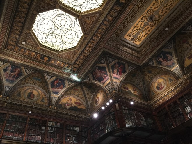 After admiring Pooh and friends for awhile, we headed back out into the city in search of something else to do. We had a lot of time to kill before our dinner and theatre evening, and we’d noticed the J.P. Morgan Library on our walk from Penn Station to our hotel. I’ve been listening to Book Riot’s new(ish) podcast, Annotated, since it launched – and after their early episode on Belle de Costa Greene, Morgan’s personal librarian, I’d thought it would be cool to visit the Morgan library and see the fruits of Belle’s collecting for myself. Since the Morgan Library was right there, and we had hours free, we decided to go check it out.