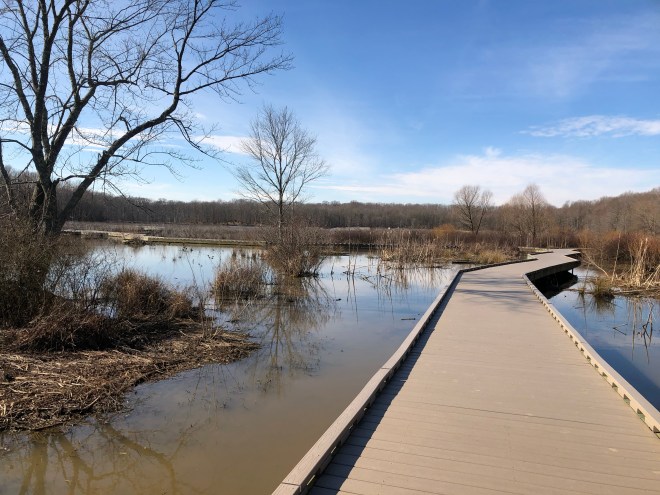 Eventually we made it across the wetlands to the other side of the park. Although I love boardwalk hikes, I was kind of relieved to get off of the boardwalk this time – and away from the goose poop.