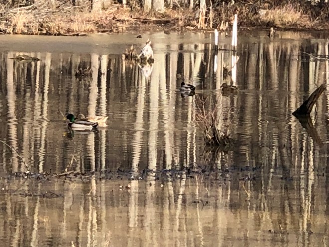 Spotted a few ducks out on the water. This picture does them no justice – the males had the most gorgeous jewel-toned heads.