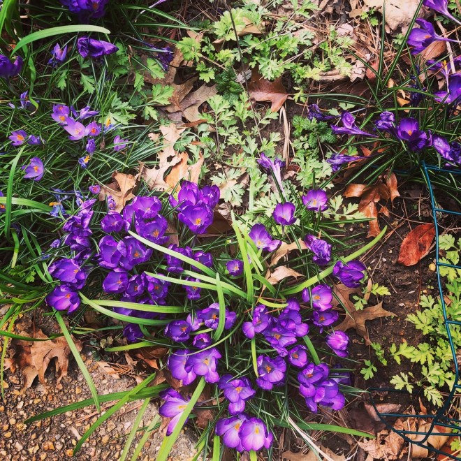 We chose Piscataway Park for the possibility of seeing animals, and for the mixture of lovely views, a serene trail, and fun farm activities.  The mid-March crocuses were a-blooming.