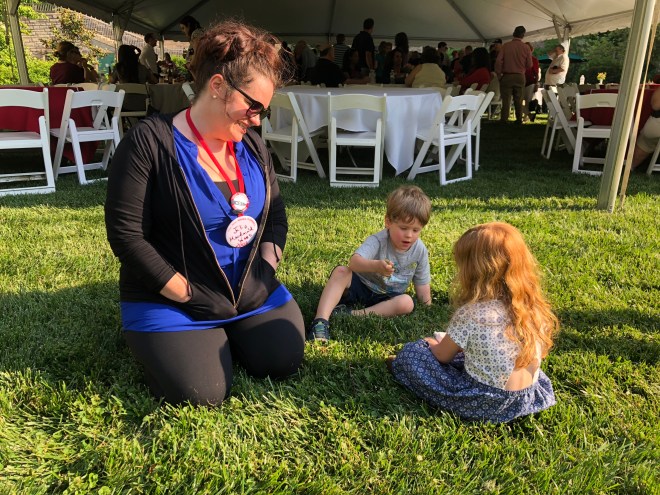 Class HQ located, it was time to sign in, get our nametags and our schedule of activities, and see who else was lurking around. Peanut put on a concert for the class volunteer crew while I chatted with a friend from my major who also happens to live in DC about her son’s awesome hockey jersey. #ALLCAPS! A group was gathering to watch the game that night (which ended up being the Caps’ Stanley Cup victory) but we sadly had to beg off – kiddo bedtimes and work beckoned. We grabbed a small dinner at Wegmans, headed back to the Airbnb, tucked the babies into bed and then fired up our laptops for a long evening of way less fun than our classmates were having celebrating the hockey victory. Boo. What can you do?