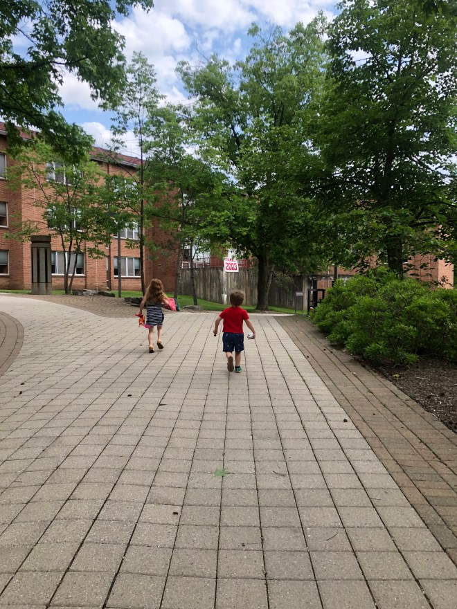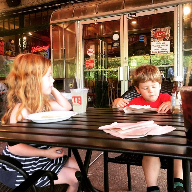 We rolled into town around lunchtime on Thursday – the kids were excited. We left Virginia at 6:00 a.m. and they were up, bright-eyed and raring to go, at 4:30, wanting to help us pack the car and demanding to know when we were going to Ithaca. Keep in mind, these children had never been to Ithaca. Our reputation for delivering awesome destinations is just that impressive.