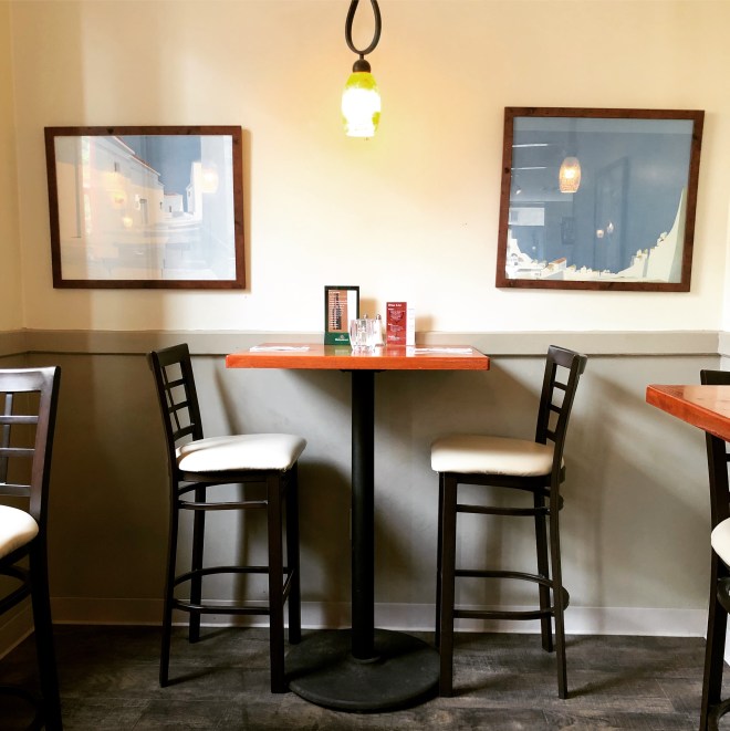 We were all hungry after the hike, so we refueled at another favorite Collegetown haunt – Aladdin’s, a café serving up Greek and Mediterranean food. Aladdin’s was an extra special place for us: the site of our first date! I had to snap a picture of the little corner table where we sat for three hours one late August afternoon, eating fruit salad (me) and gyro (Steve) and talking about school, our families, and Altoids for three hours… and the rest was history! We were sorry to see that they didn’t have their delicious artichoke on the menu anymore, but the dolmades and sangria made up for it. Back to the Airbnb for more work and attempted (failed) naps, and then–