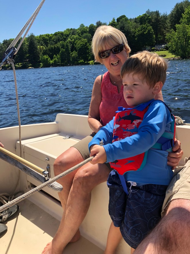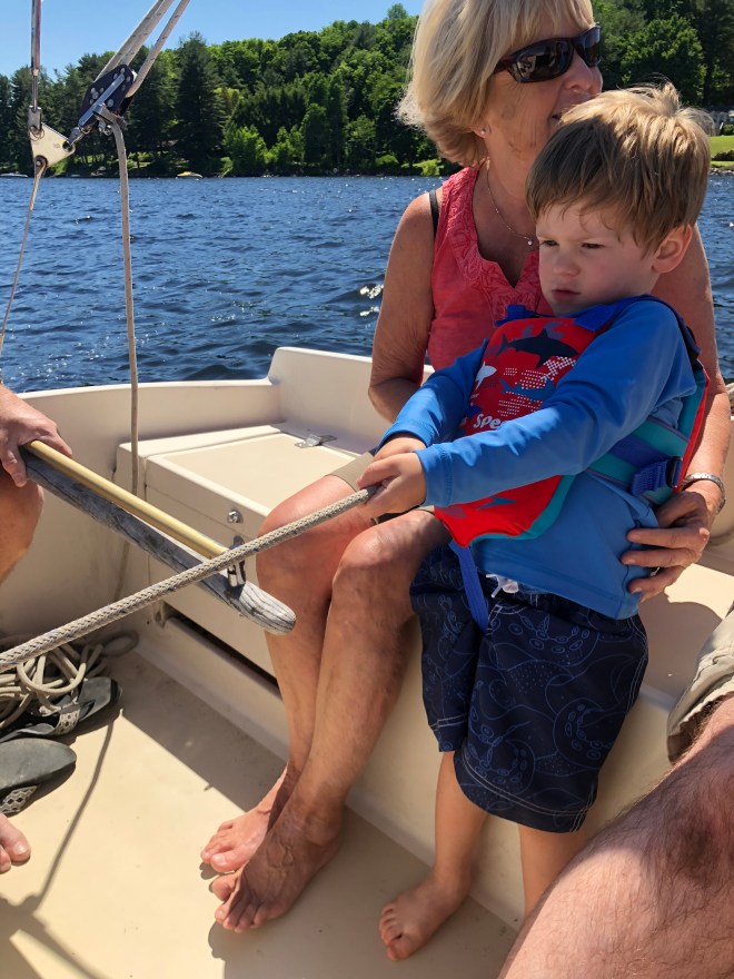 Grandad sailed most of the time, with the little swab as his helper and lap buddy, but Uncle Dan also took a turn at the tiller.