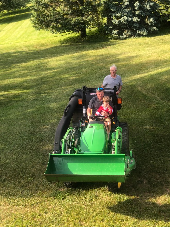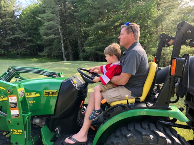 After we got out of our soaked clothes and into some nice, dry attire, we headed to our family friends’ house for a cookout – always a treat. Great food, great company, and tractor rides – what could be better?