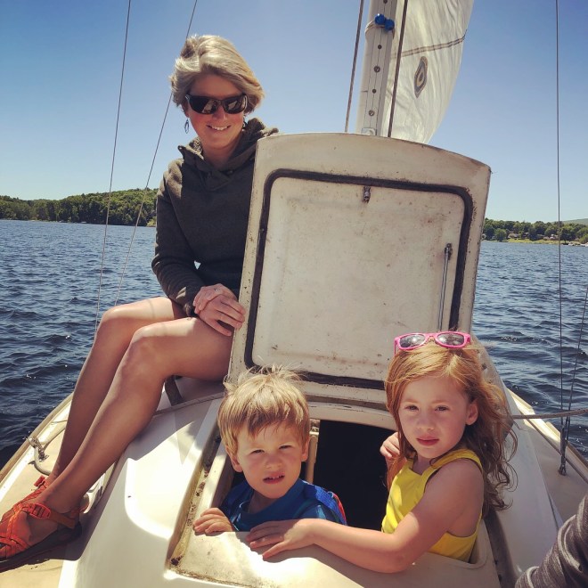 Peanut spent most of the sail chilling with Nana in the cabin, but she did poke her head out of the hatch for a little fresh air on the bow. The kids weren’t actually allowed up on the bow but they still got the breeze.