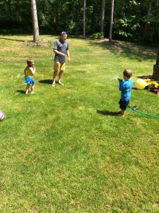 Yes, spraying the children with a hose is always a good idea. An even better idea: give Nugget the hose. We all got wet.
