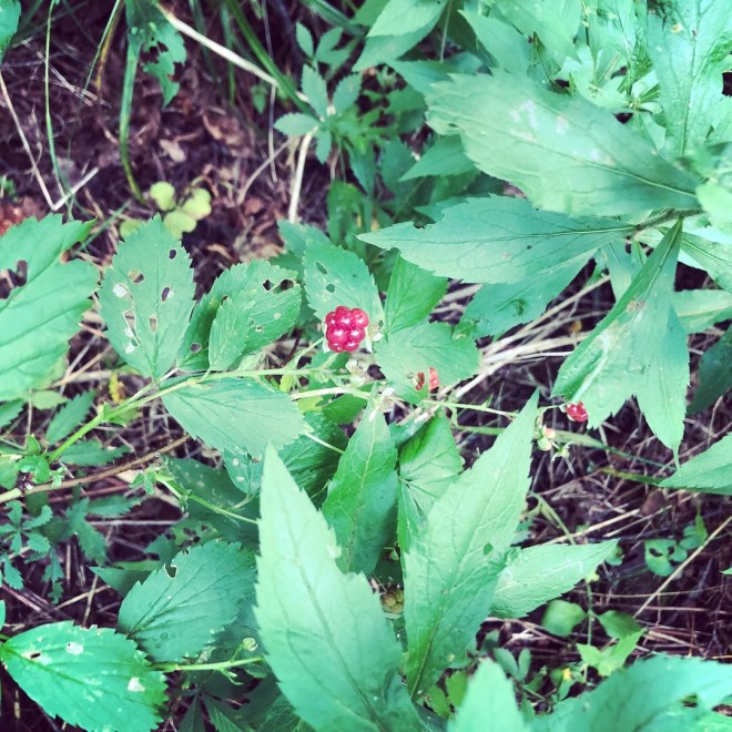 I passed on the dirt pies in favor of a much more delicious trail snack – wild raspberries! (Of course, you should never eat anything that you can’t identify. But I grew up picking wild raspberries from the large thicket that grew around my grandparents’ camp on the Sacandaga, and I can easily tell them apart from less palatable trail produce.) There were wild raspberries growing all over Lake Placid, and I plucked a few whenever I spotted them – which was often.