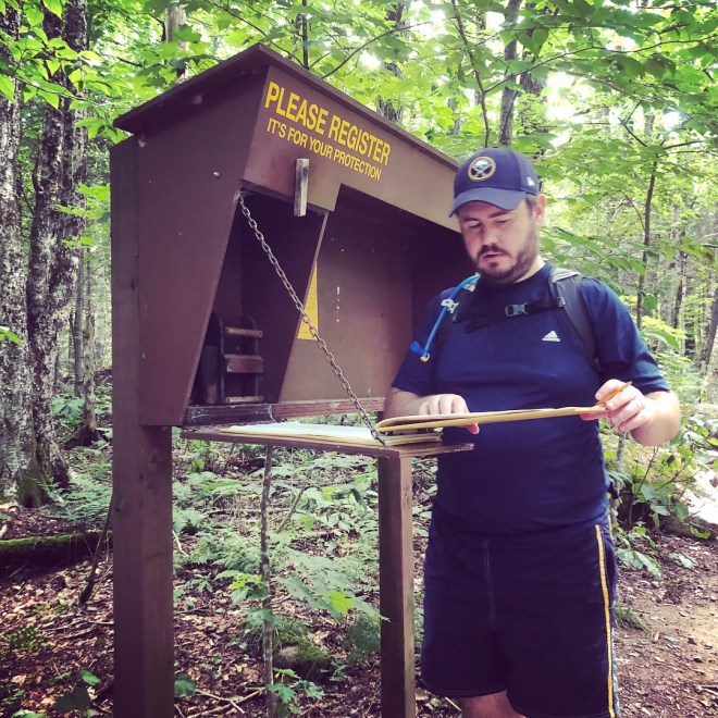 Finally, some vacation recaps! It feels like it’s been forever, and it has been a year since our last trip of a week or more. Last year, we flew twice – once to California for a wedding followed by a family reunion and vacation, and a month after that, to Florida for another wedding. So my one criterion for this year’s vacation was this: no flying. I picked four driveable locations – the Adirondacks; Maine; Smith Mountain Lake or Congaree National Park – and told Steve to choose. He picked the Adirondacks, so we started gleefully planning a week of hiking in and around Lake Placid, New York. We drove up to my parents’ place on a Saturday in late August, crashed overnight, then drove the rest of the way on Sunday morning – and on Monday, our first order of business was to hike. For our first trail, we picked the Brewster Peninsula Nature Trail. Steve signed us in at the trail register – an Adirondack must – and we were off.
