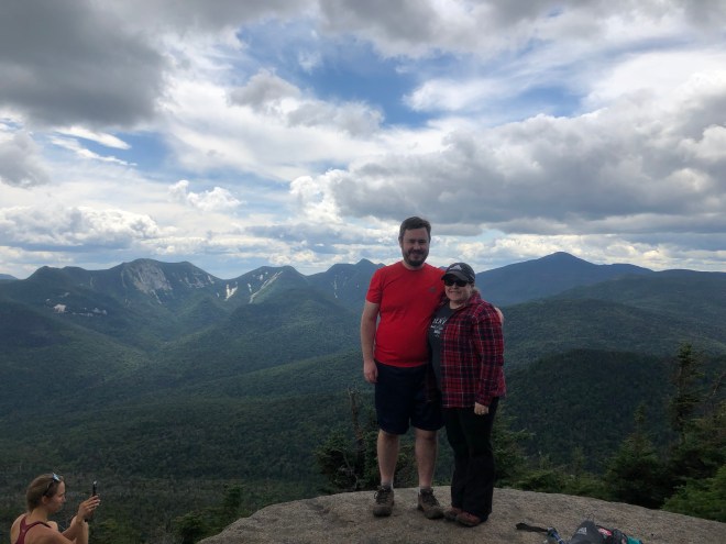 With a whole week to spend in the Adirondacks, it wasn’t a question of will we hike a high peak? but how many high peaks will we summit? Steve and I are slooooooowly working on the goal of summiting all forty-six high peaks (loosely defined as the Adirondack peaks over 4,000 feet above sea level – but they were measured over 100 years ago, and more accurate measurements have since revealed that there are a couple of peaks under 4,000 and at least one 4,000-footer that didn’t make it on the list). When I say slowly, I mean slowly. At the rate we’re going, it will take us approximately 90 years to finish the challenge. But it’s all about the journey, right? (I’m not kidding. It is all about the journey.)