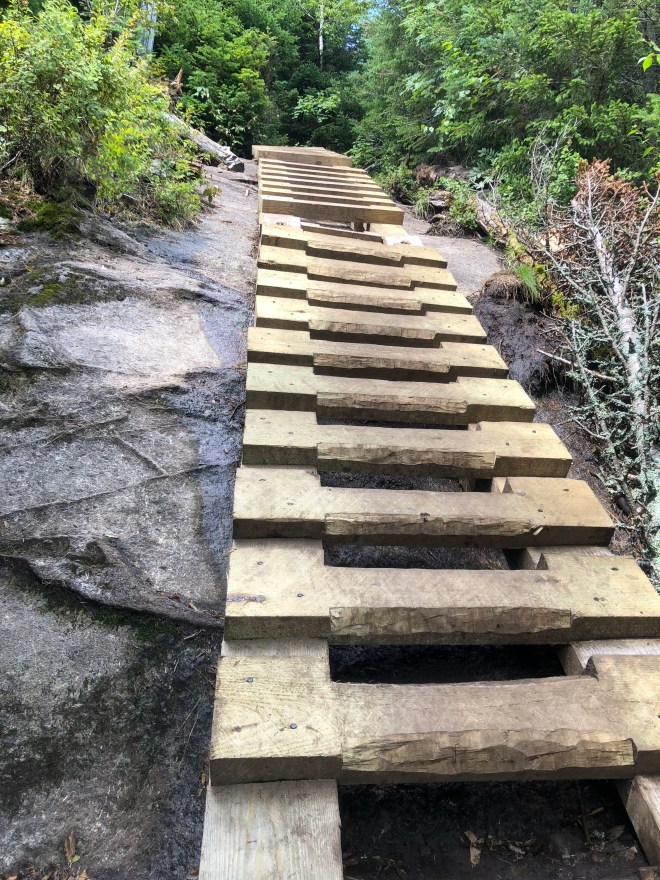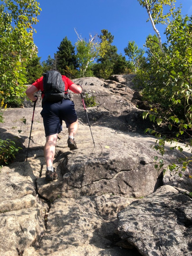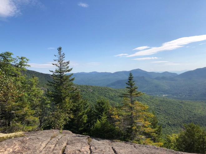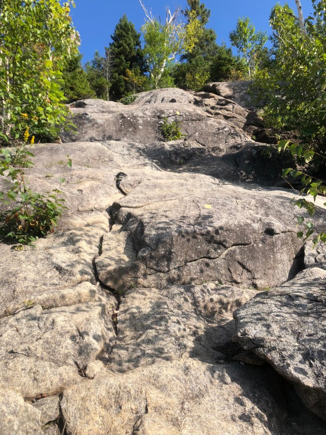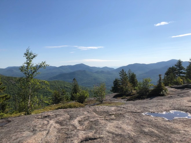 Whenever I plan an Adirondack high peak hike, I go back to every ADK46r blog I know and read their trail reports, but I’m rarely able to discern from there what to expect. I finally figured out why that is: when you’re thinking about how to approach a section of steep and probably slippery Adirondack granite, you’re not taking photos. My phone was in my backpack for most of the hike – until the views started.